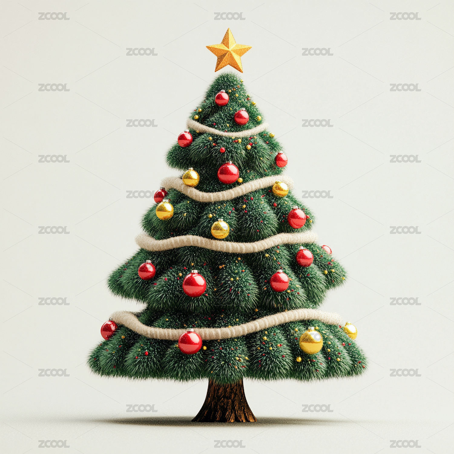 圣诞树,绿色,黄色星星,树,装饰,红色,金色,球体,白色,雪花形状
