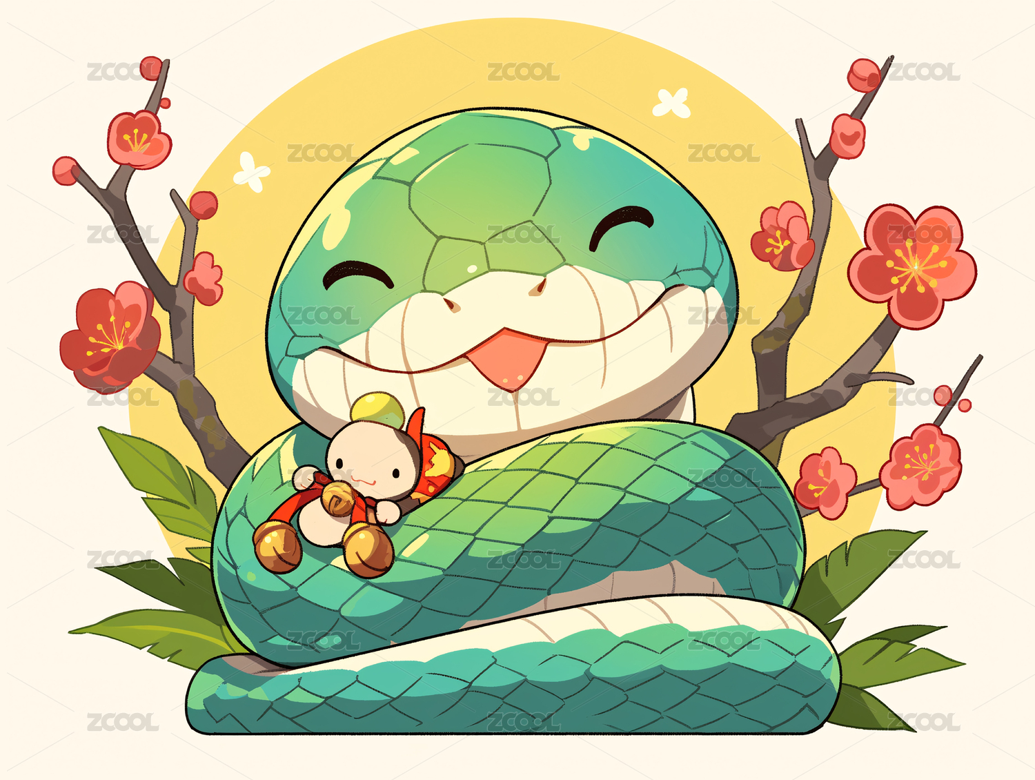 插画,动物,节日,卡通,可爱,蛇,蛇年,圣诞帽,设计,生肖