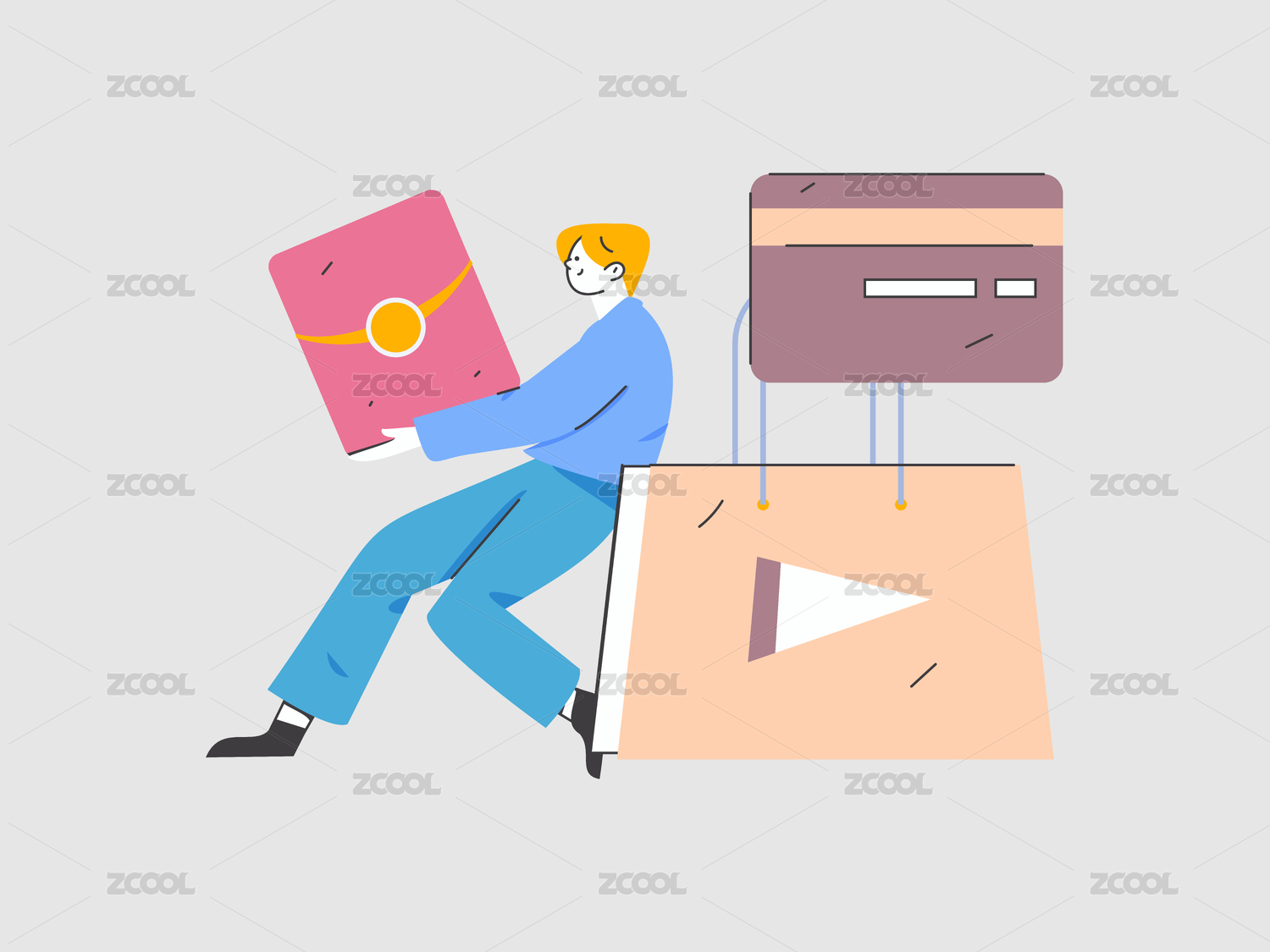 查看信用账单的男人, 矢量扁平人物场景创意概念插画