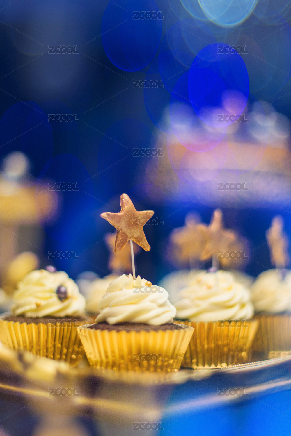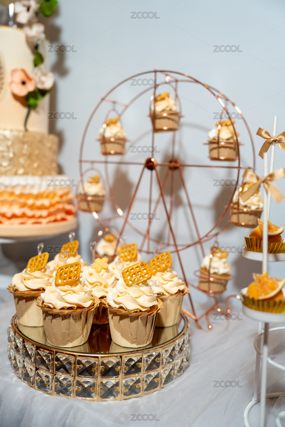 金色容器里的杯子蛋糕,奢华金色系甜品。