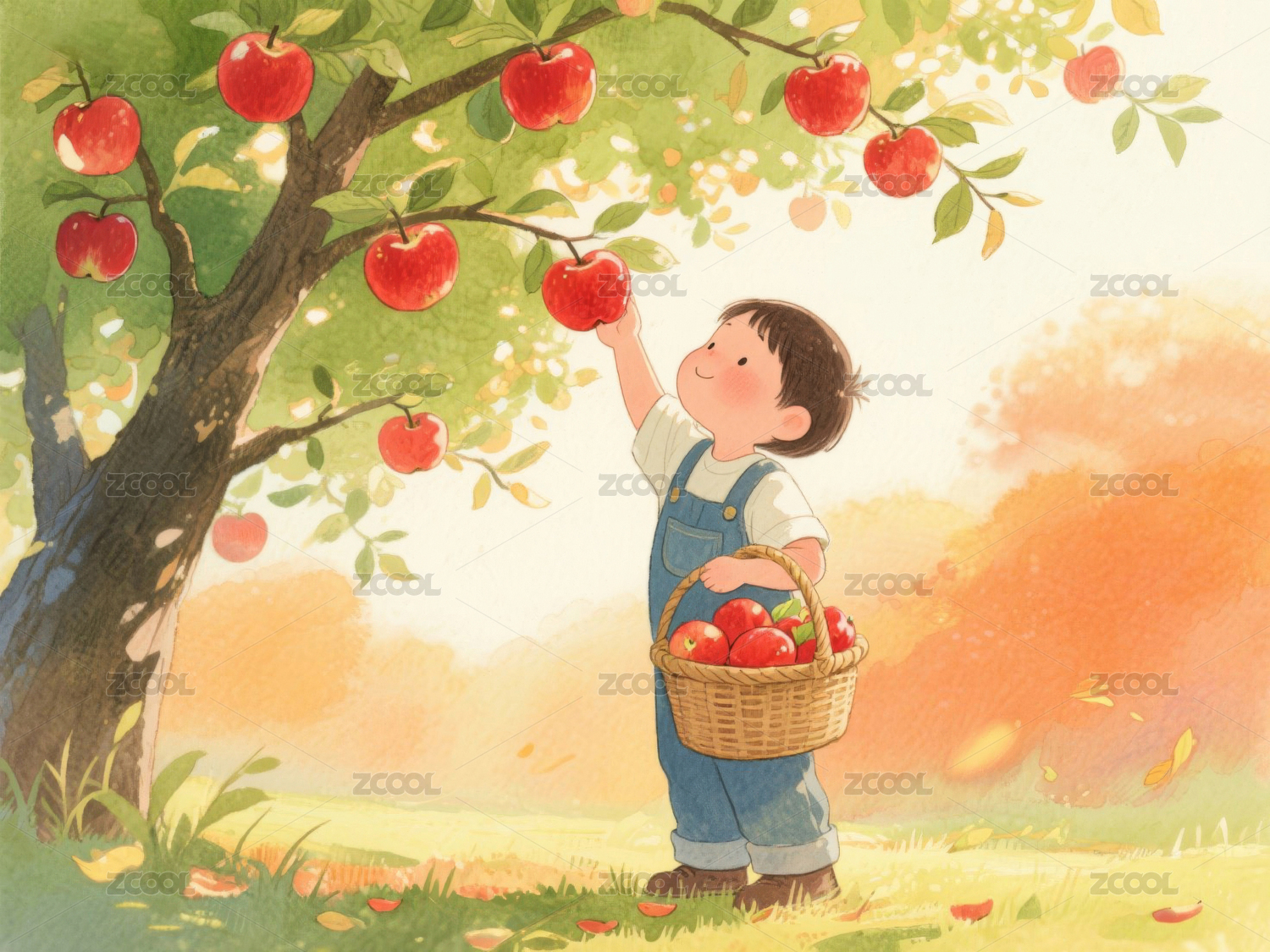 丰收采摘苹果插画背景