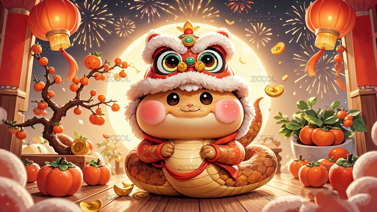 2025新年蛇年卡通蛇灯笼喜庆场景