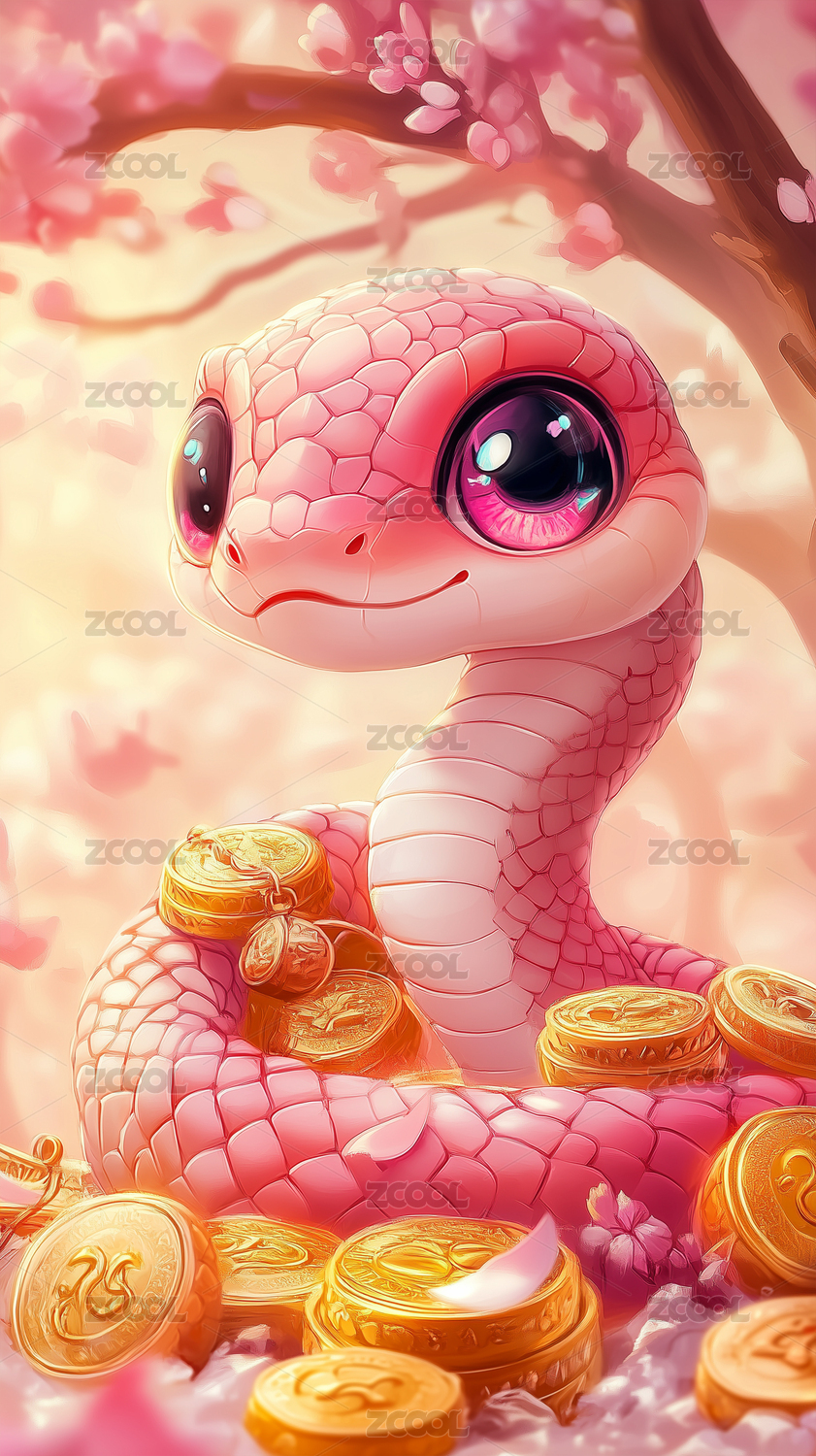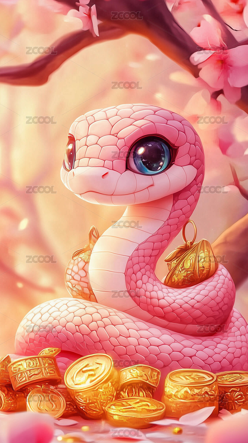 蛇年粉蛇插画海报
