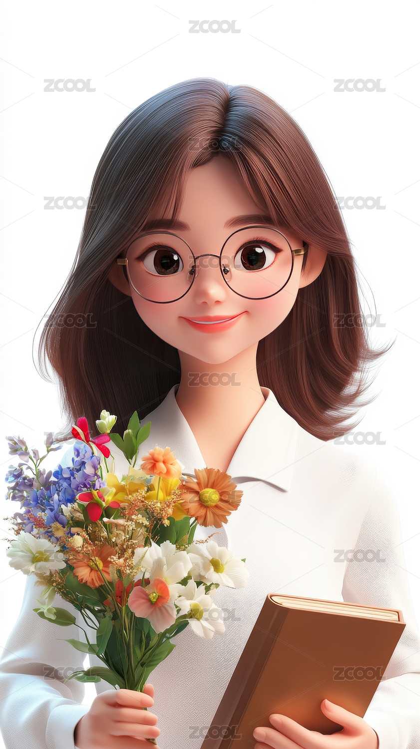 教师节,鲜花,老师,教师,花,花束,3D,让人,卡通,插画