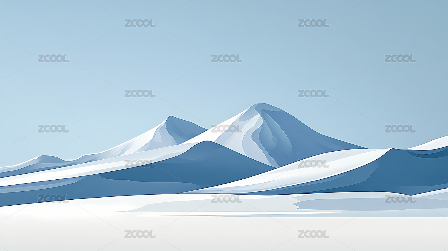 艺术白色雪山天空风景插画