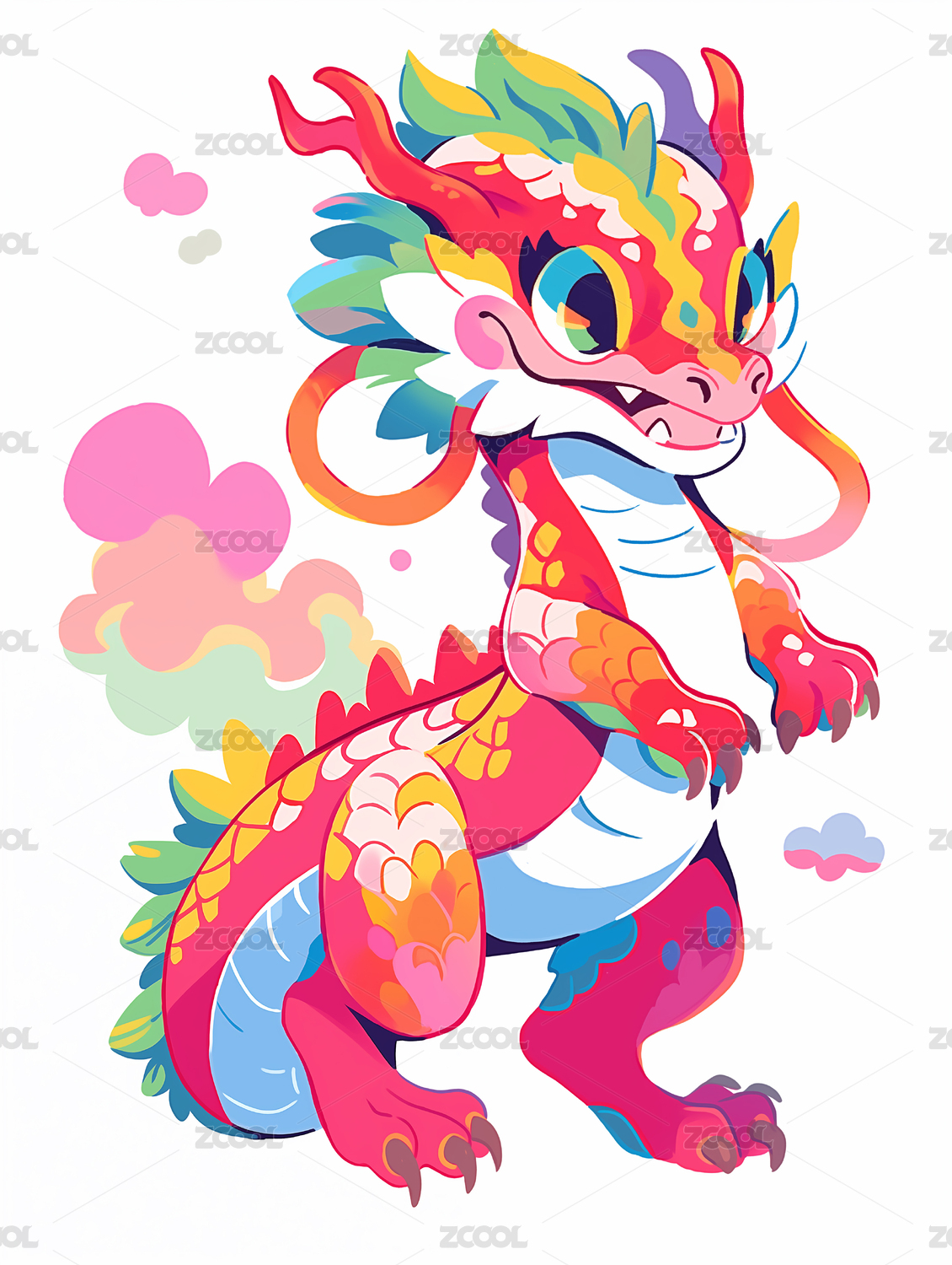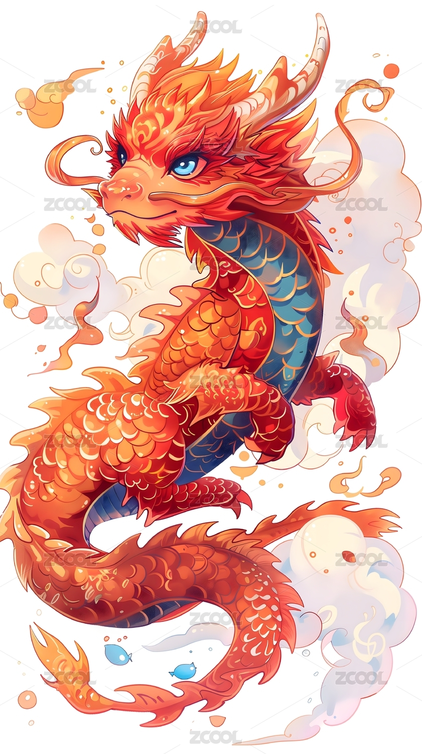 龙与云中国风元素喜庆可爱拟人龙