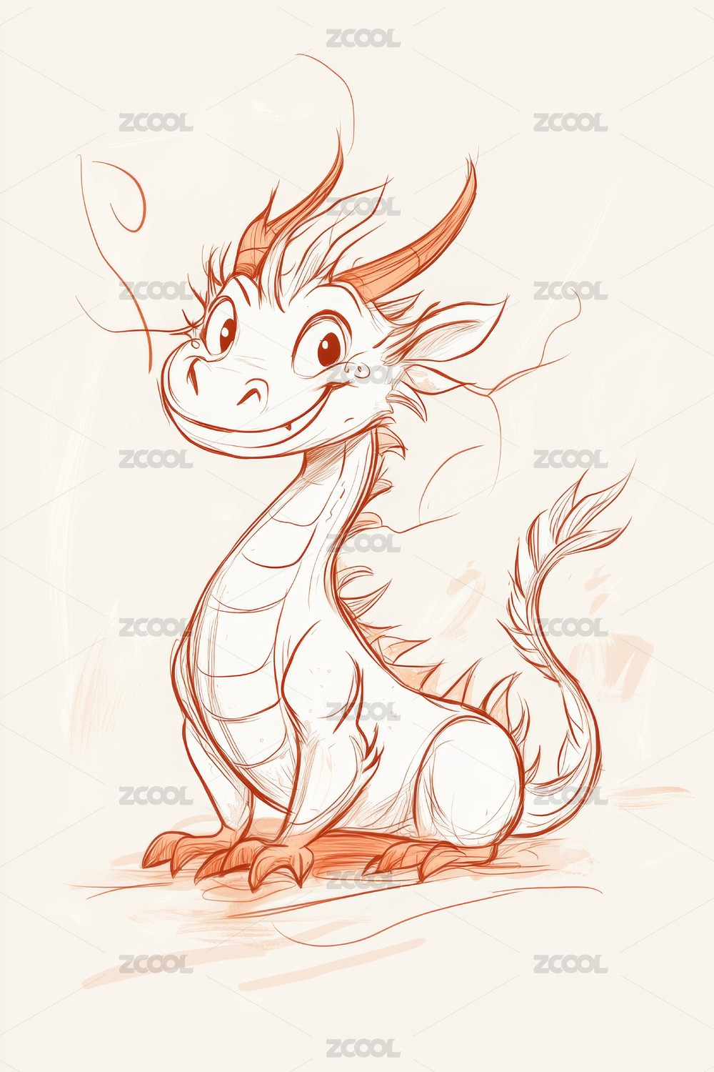 可爱的龙手绘素描线稿