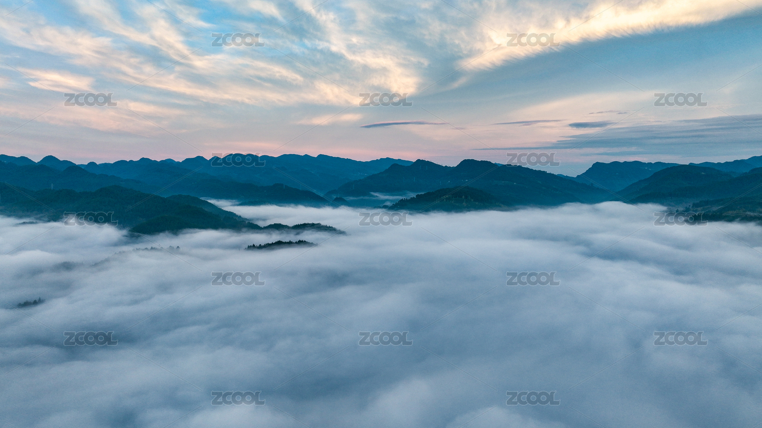航拍山间云海上的风光