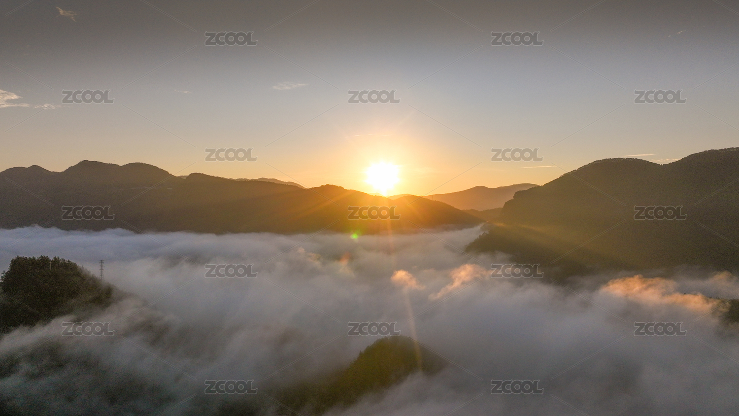 航拍山间日出云海