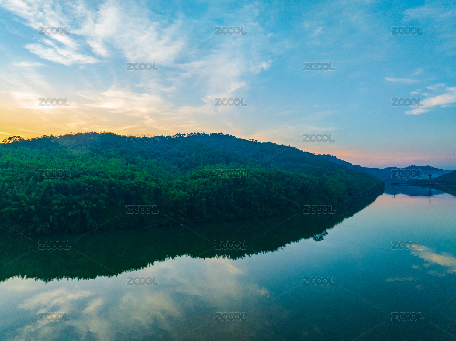 泉水冲森林公园,长沙,宁乡,航拍,乡村,农村,水库,水利设施,日出,晨曦
