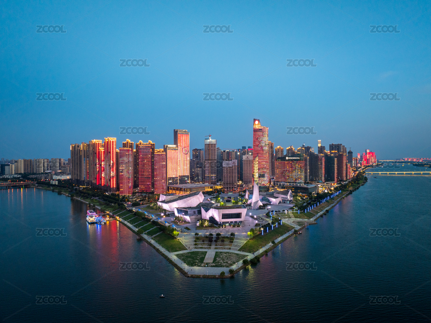 长沙,北辰三角洲,茶子山,夕阳,夜景,航拍,湘江,倒影,北辰三角州,浏阳河