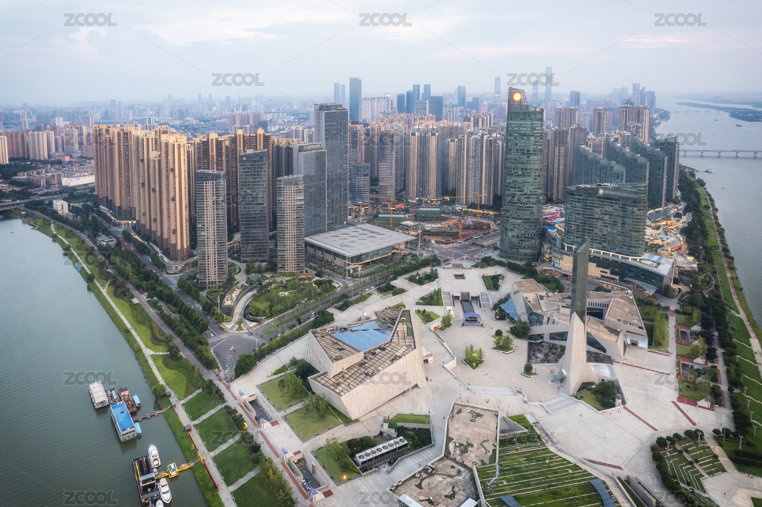 湖南省长沙市北辰三角州滨江文化园航拍风光