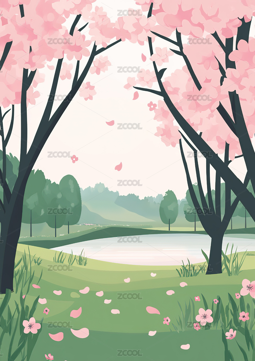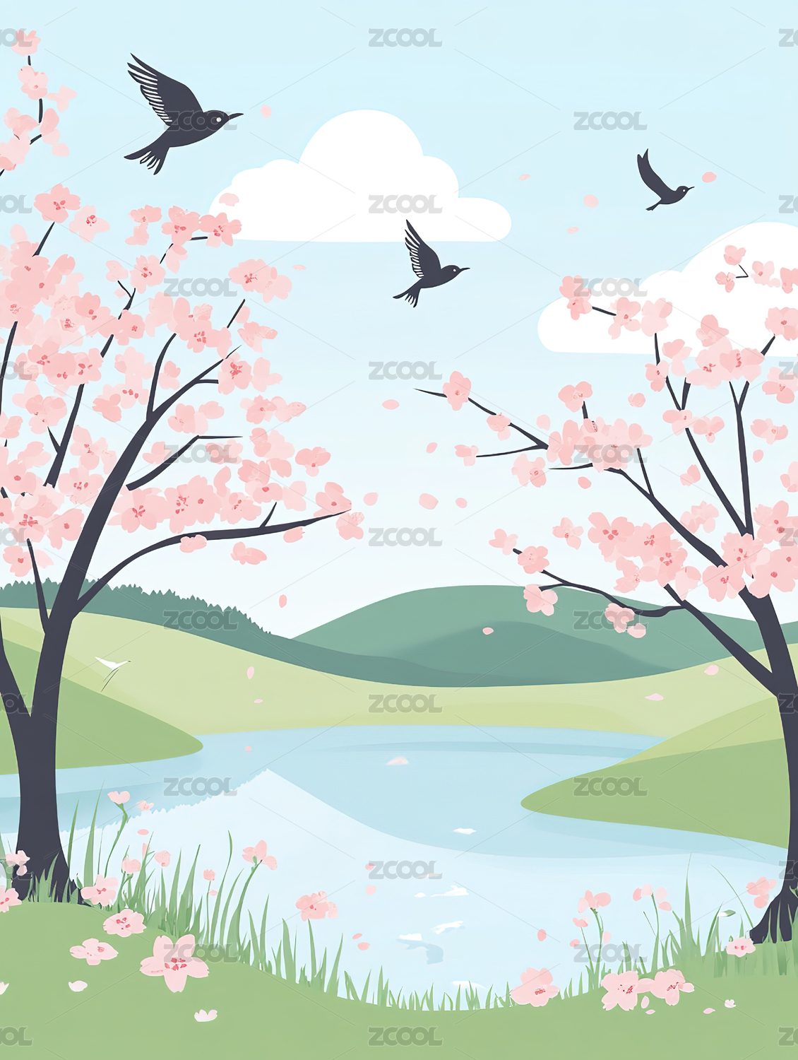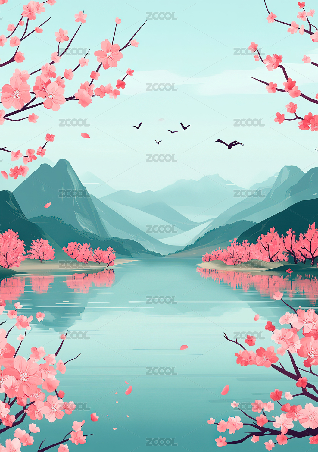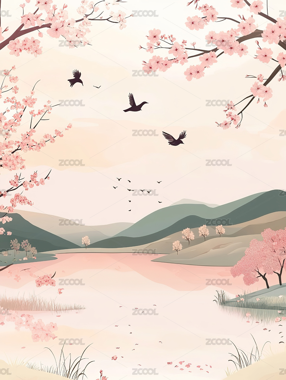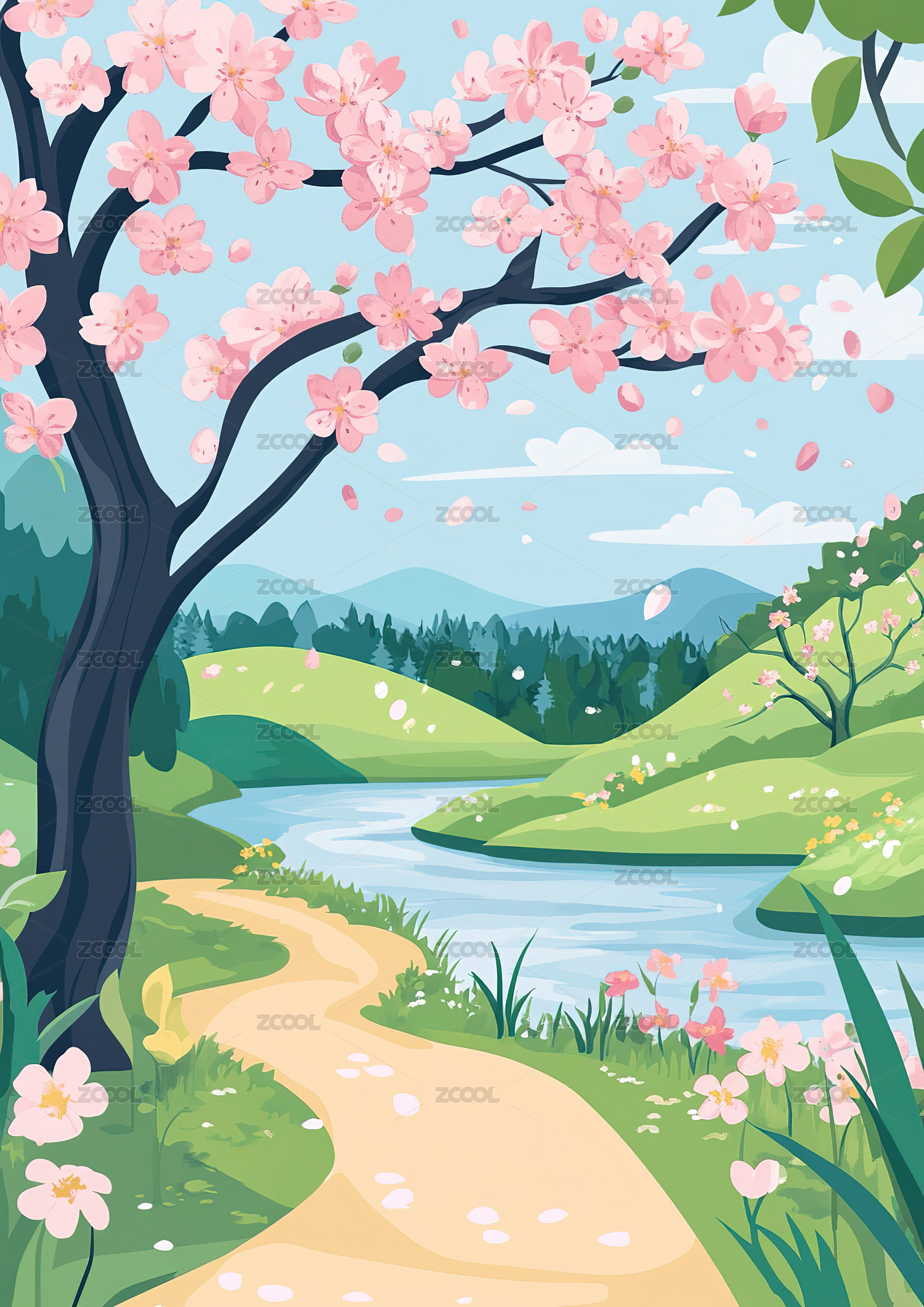插画,户外,天空,二十四节气,植物,高山,风景,节气,桃花,春天