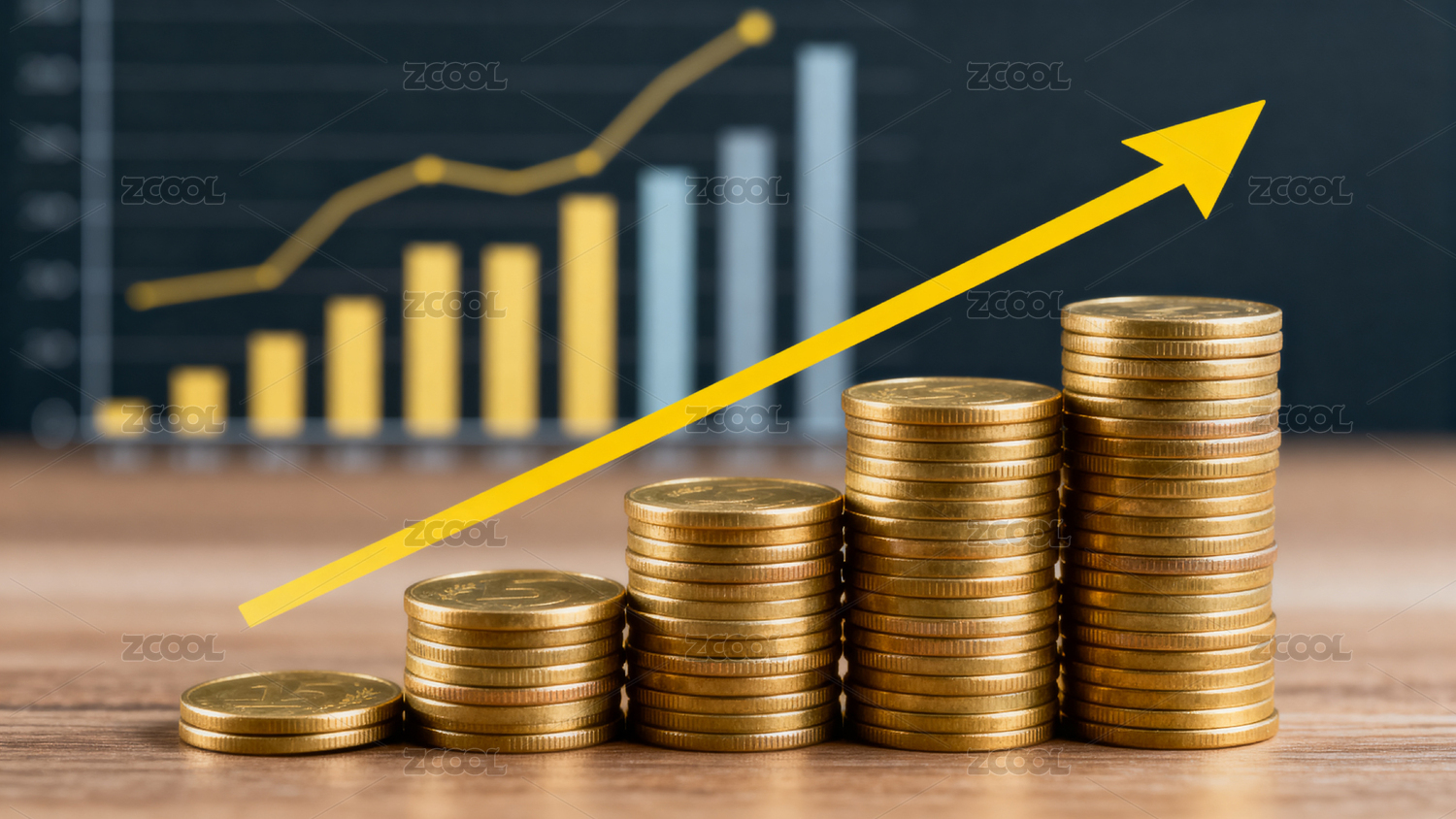 商业、金融、投资、储蓄和现金概念,特写硬币在桌面上。