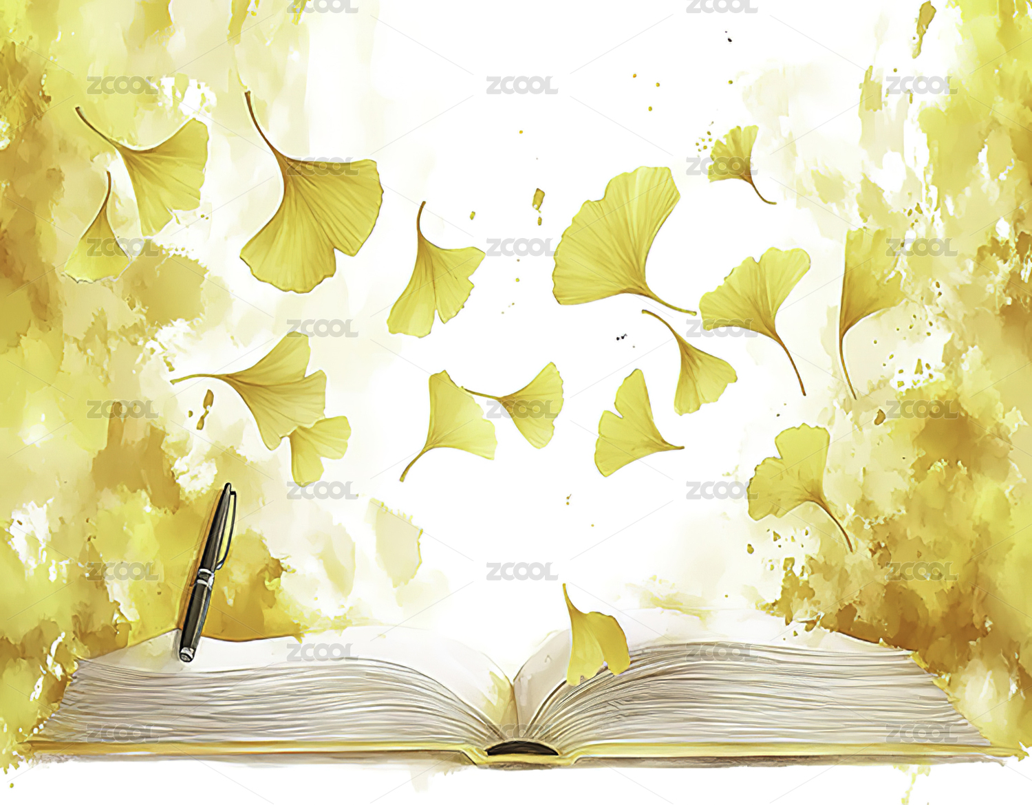 秋天银杏树下一本打开的书