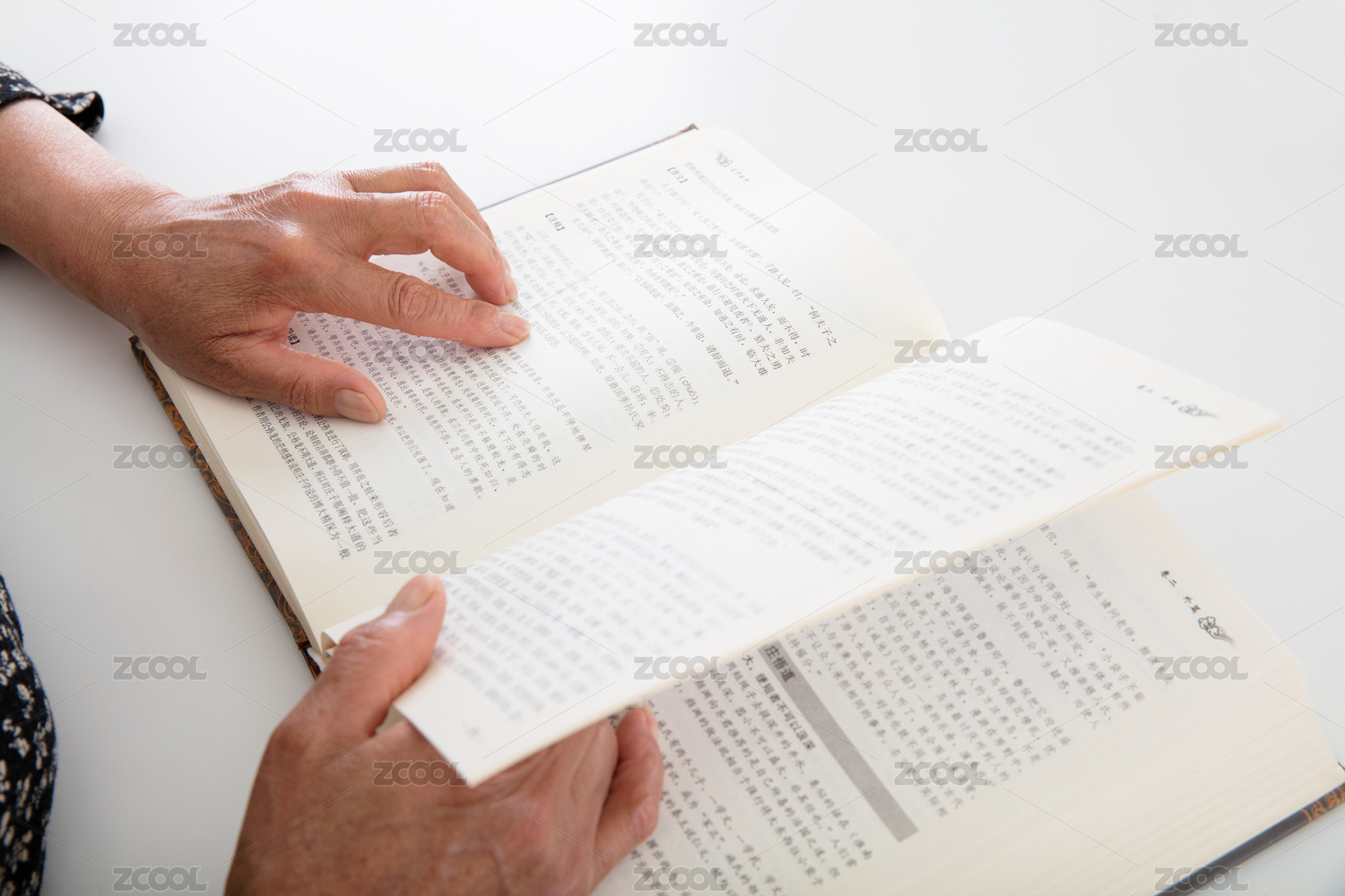 老年人正在翻书阅读再教育