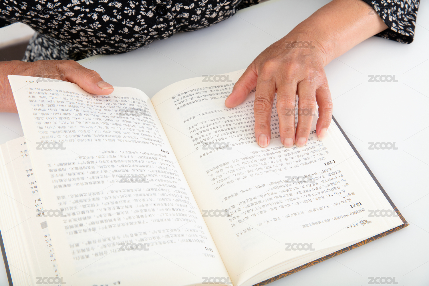 老年人正在仔细的观看一本翻开的书