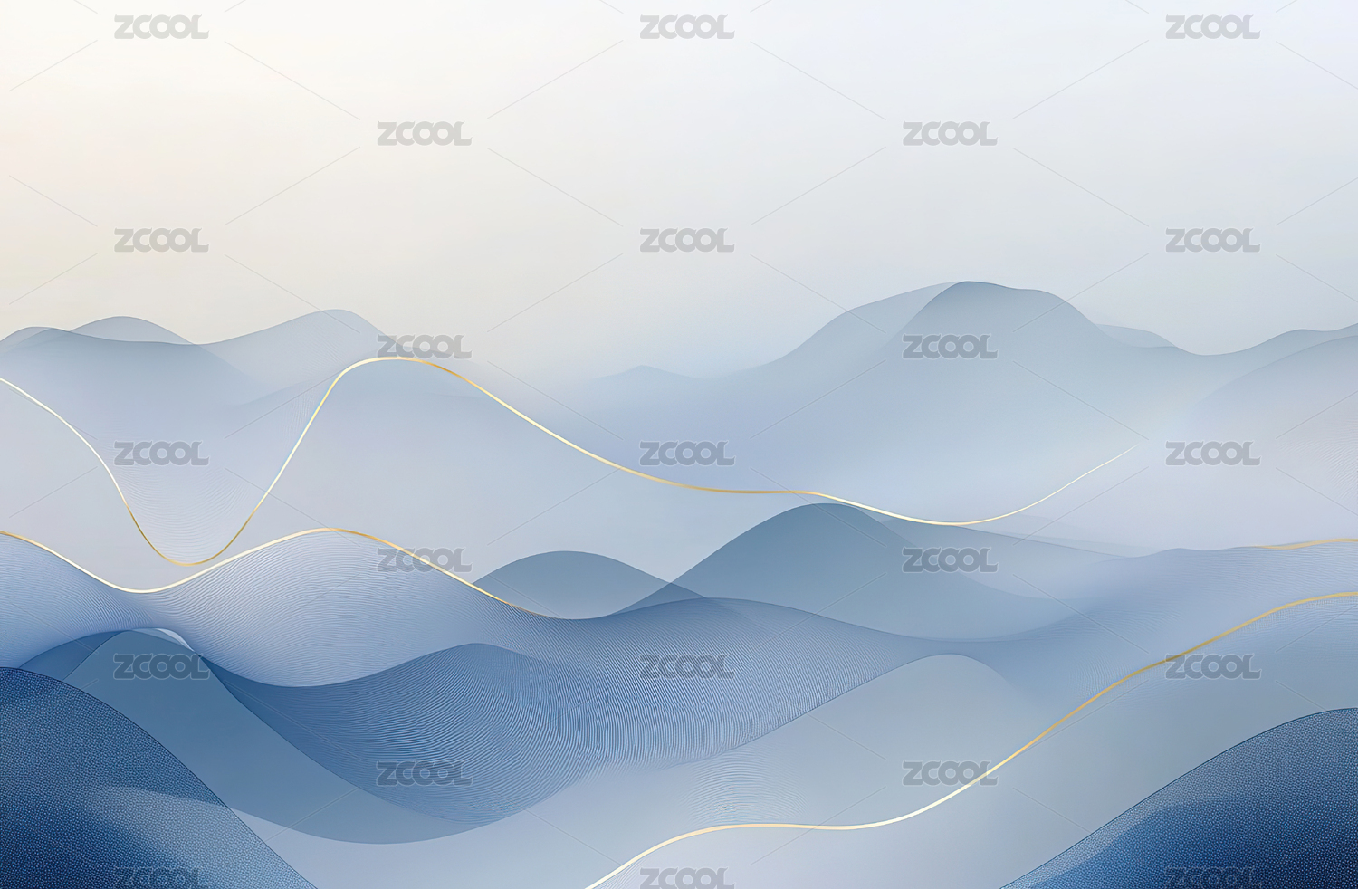 蓝色淡雅中国风简约大气山河背景