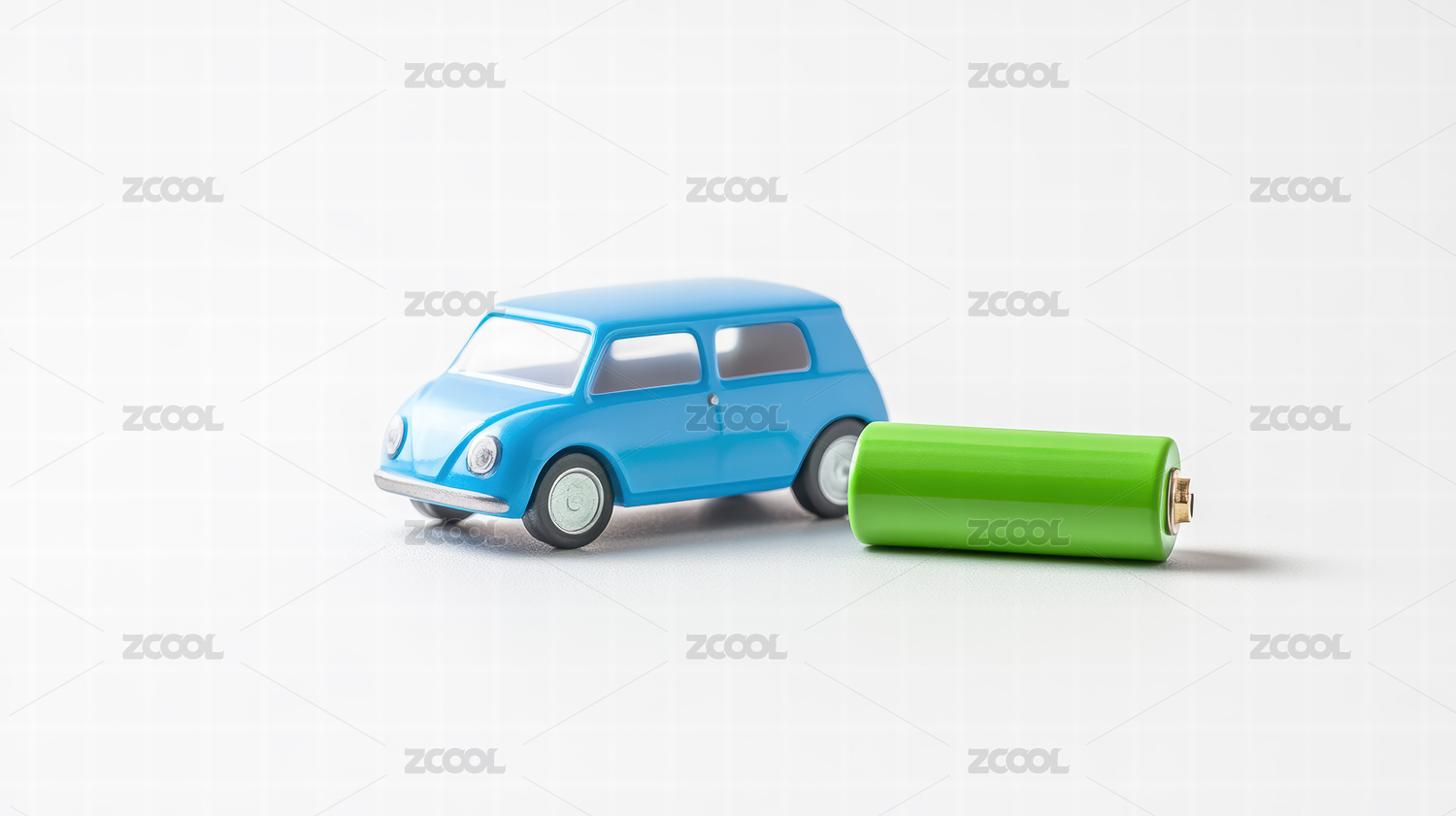 蓝色玩具车与绿色电池