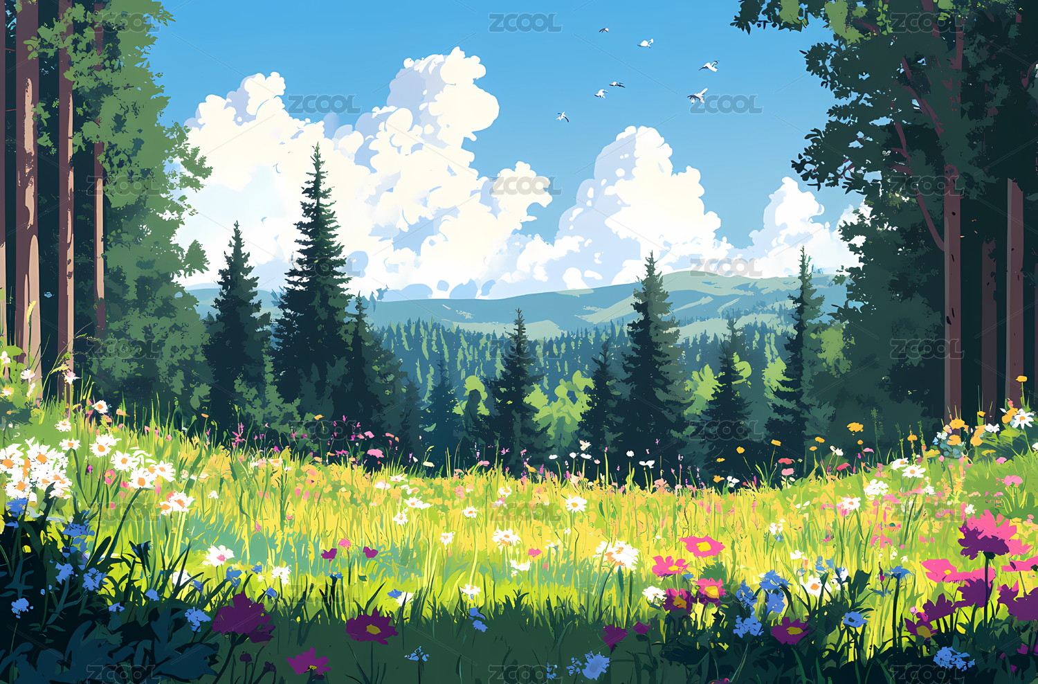 夏天蓝天白云场景插画立夏节气户外旅行插图