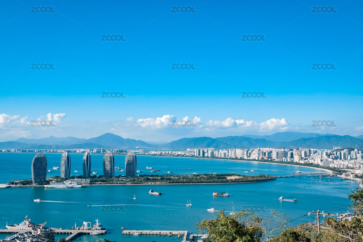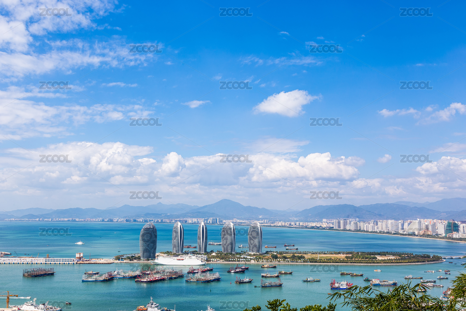 中国,海南,三亚,凤凰岛,城市,天际线,风光,蓝天,白云,旅游