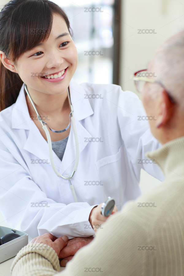 年轻的亚洲女医生做医疗健康体检,以资深的中国人