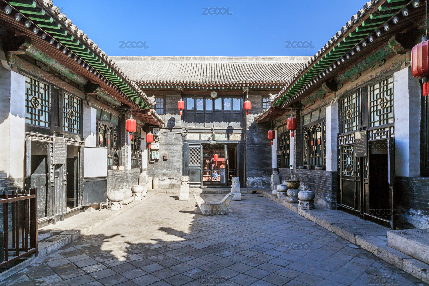 山西平遥古城内日升昌票号内的四合院古民居建筑