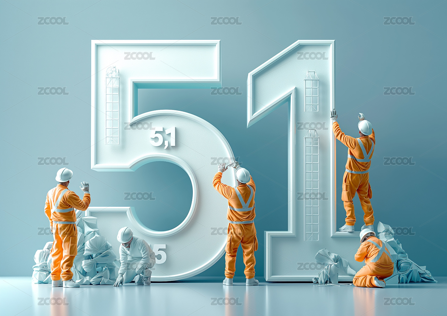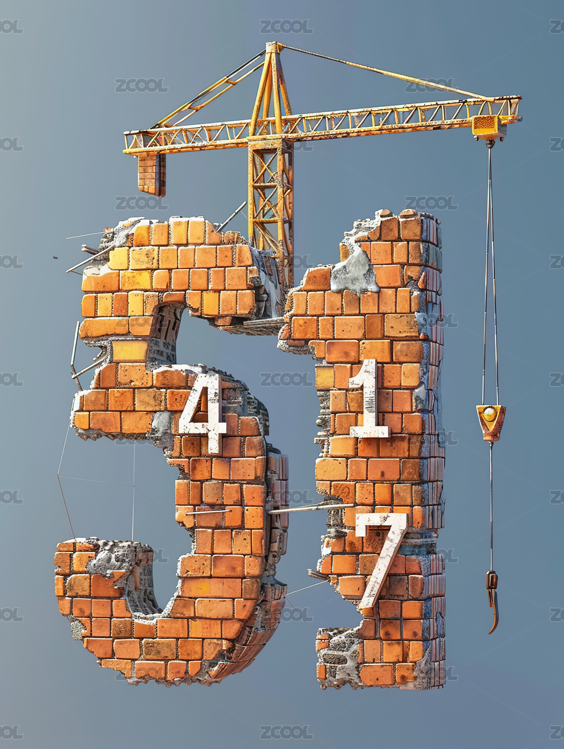 数字51,劳动节,砖墙,庆祝,标志,砖块,背景,生日,周年纪念,起重机