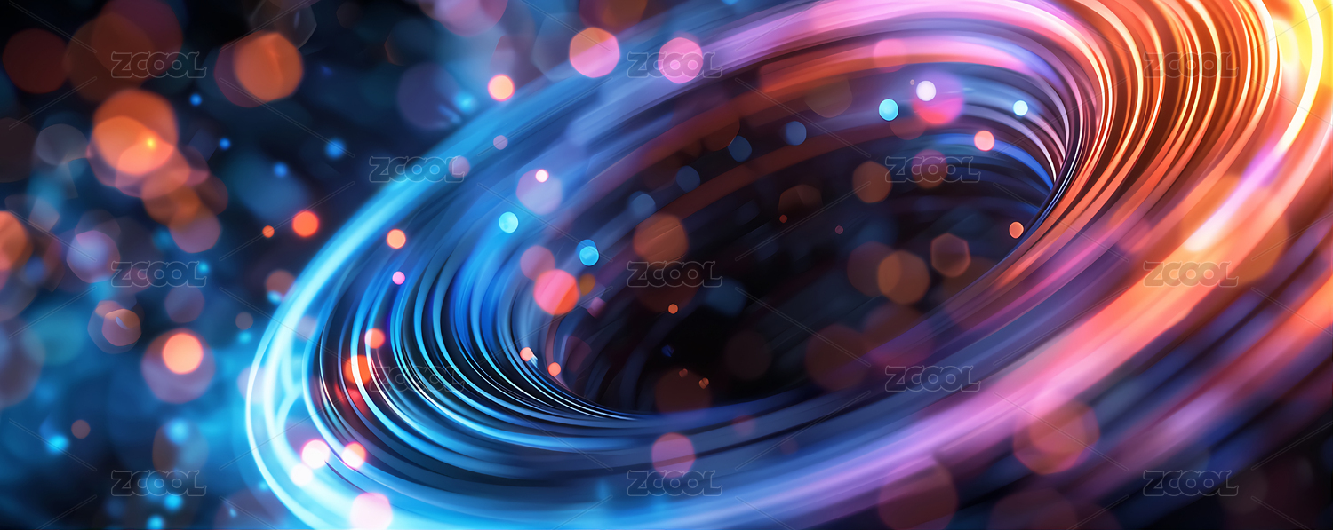 蓝色背景色彩斑斓螺旋状线圈现代科技背景