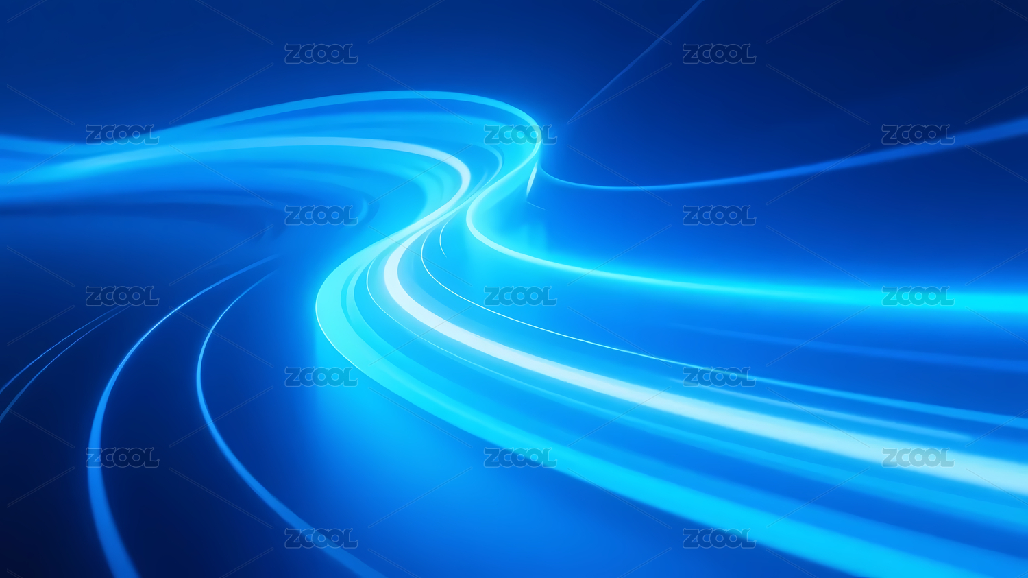 蓝色光带曲线深蓝渐变底