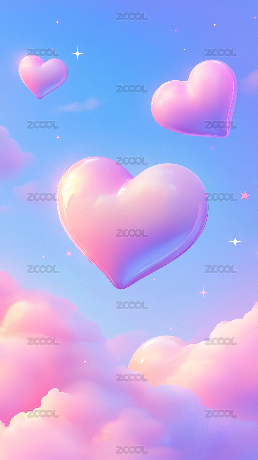 爱心,3D,云朵,云彩,情人节,爱情,婚礼,快乐,惊喜