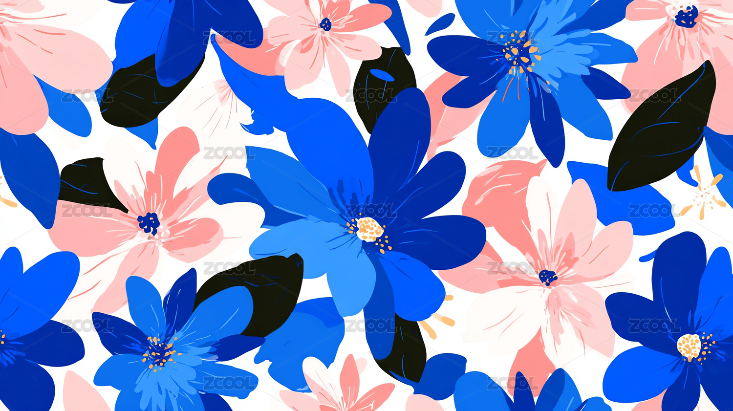 卡通,水彩花,手绘,印花,壁纸,图案,插画,叶子,潮流,花卉