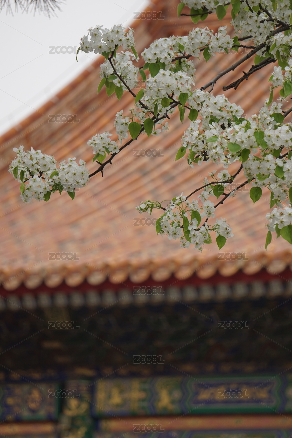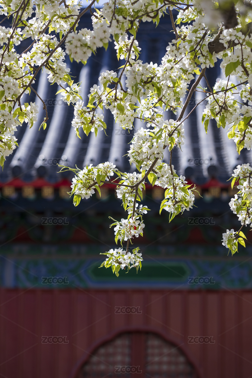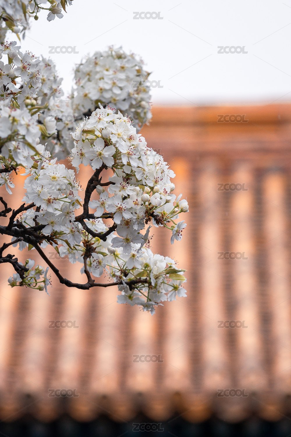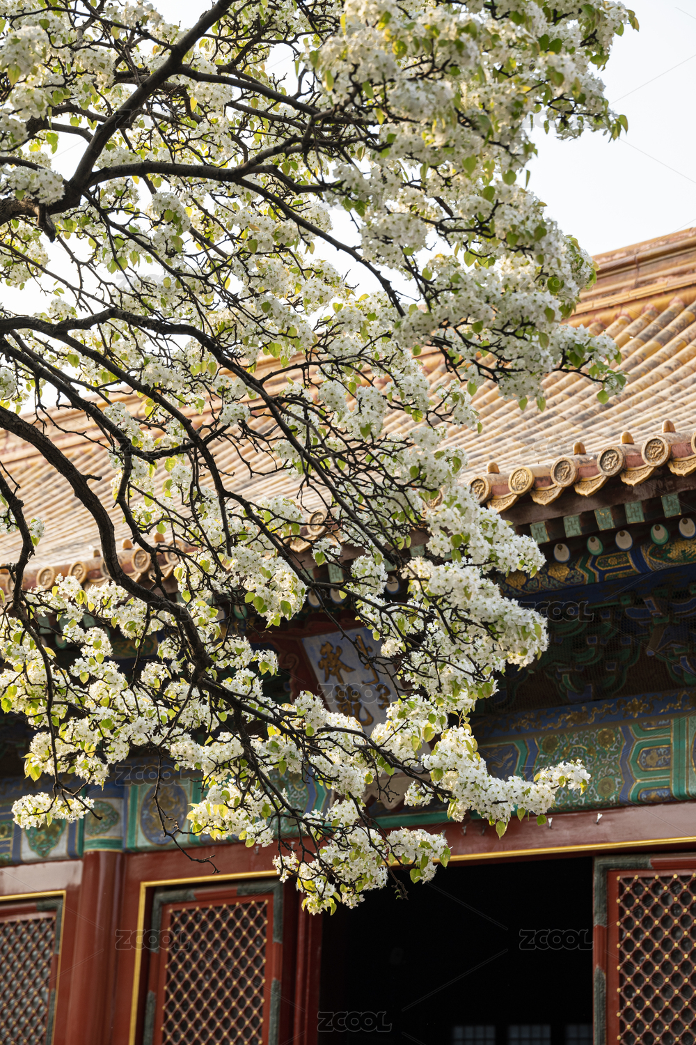 春天北京故宫博物院承乾宫里盛开的白色梨花