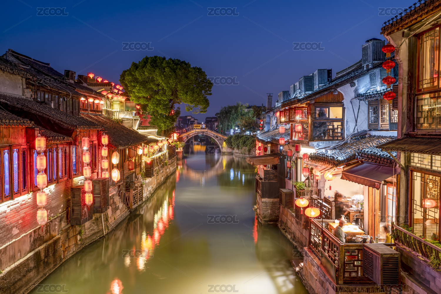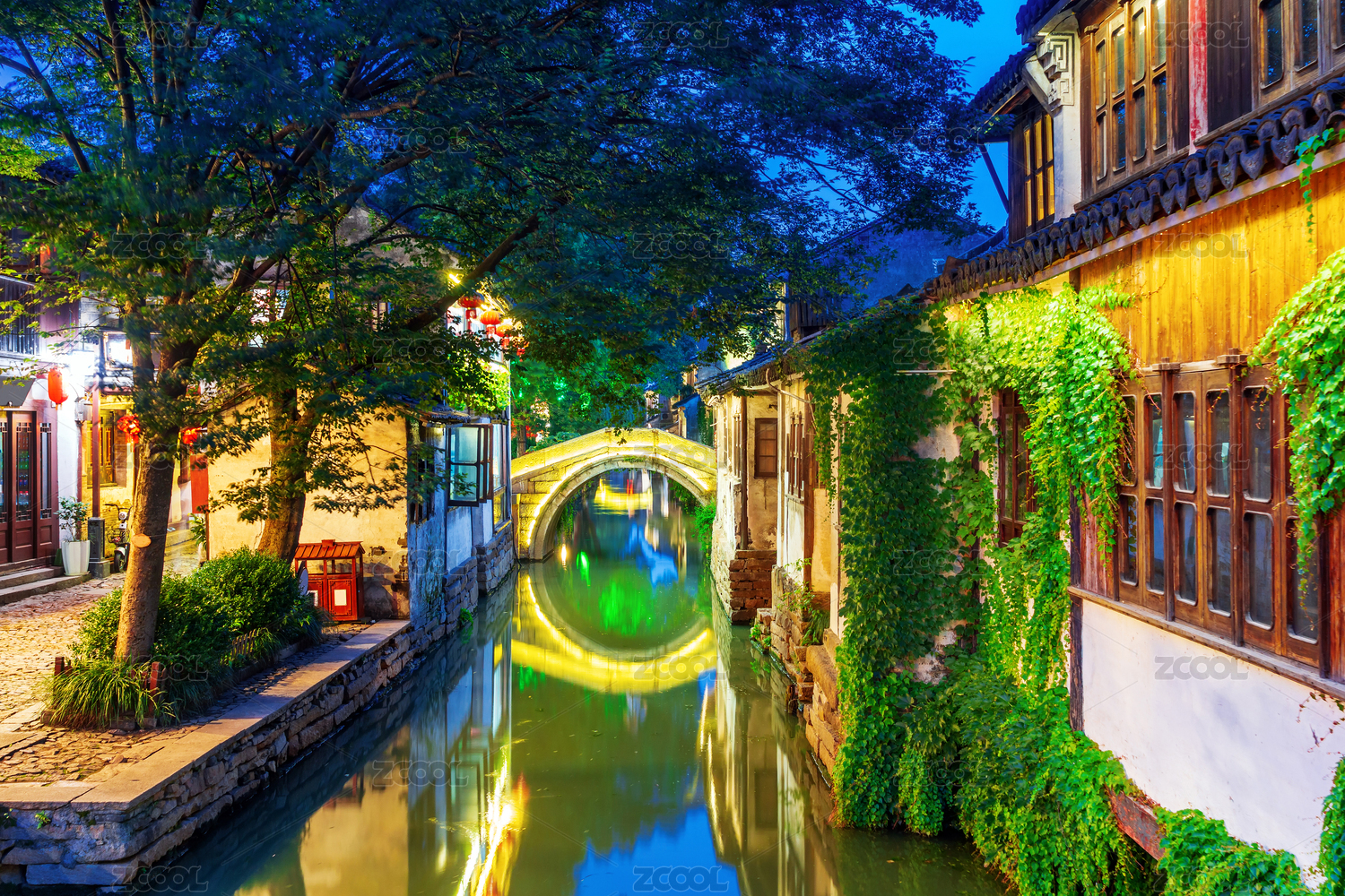 江南古镇夜景,小桥流水