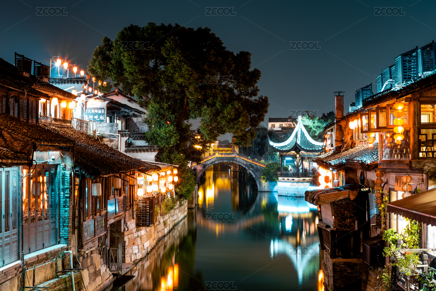 江南水乡古镇夜景