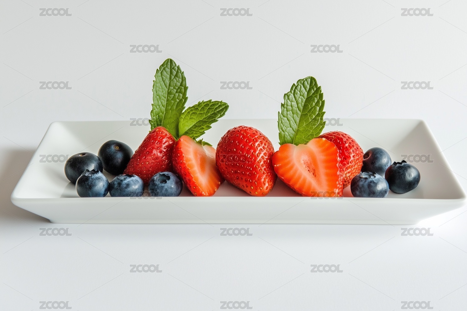 蓝色背景清爽水果甜品