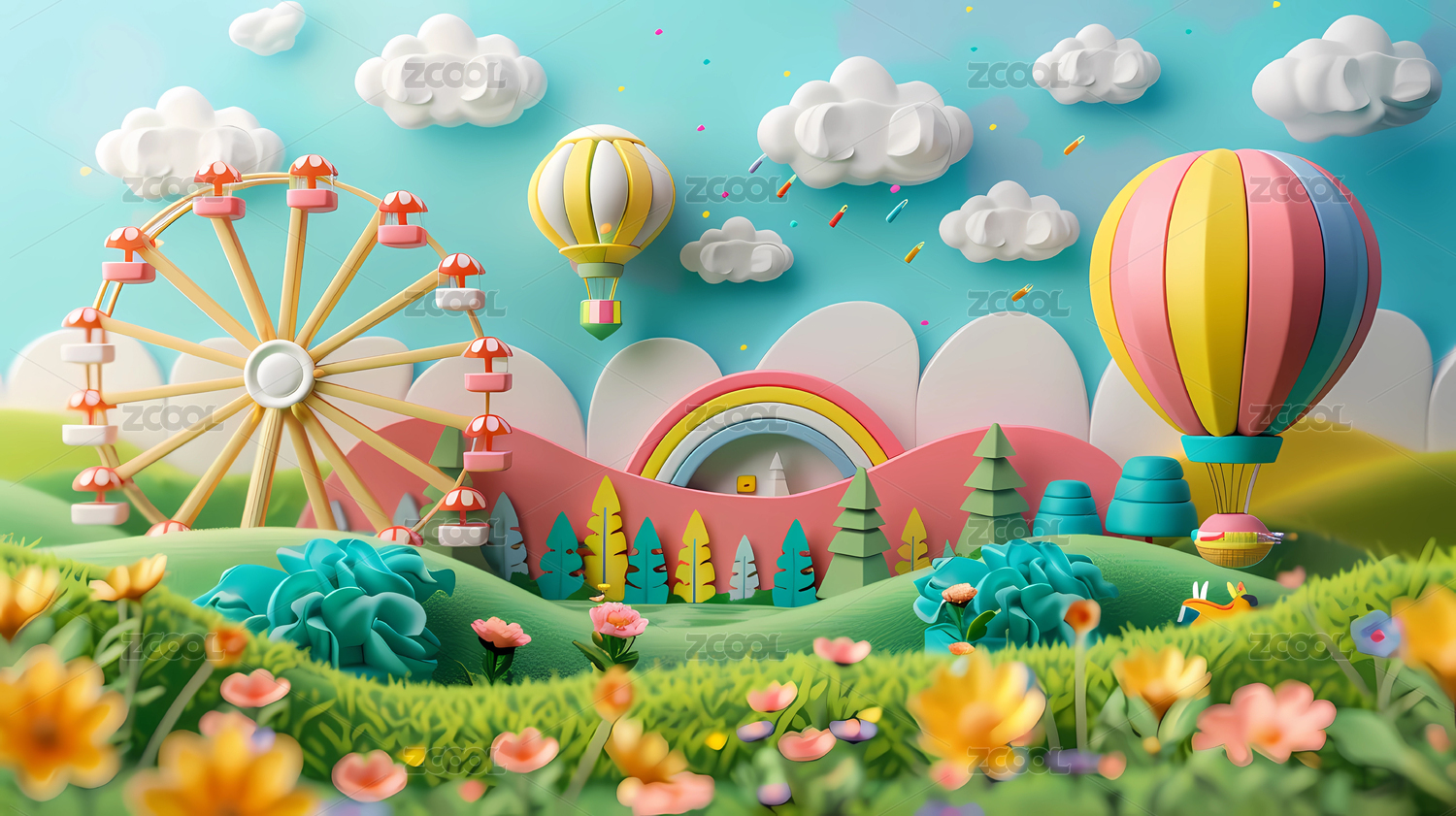 3D矢量彩色卡通背景故事书插图可爱梦幻