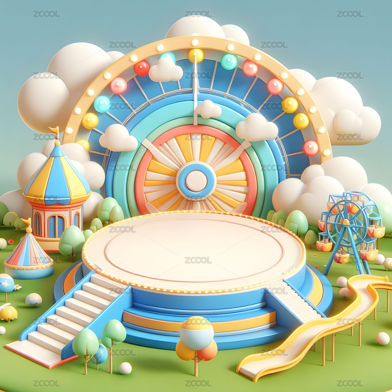 展台,舞台,3D,背景,插画,儿童节,儿童,六一,蓝天