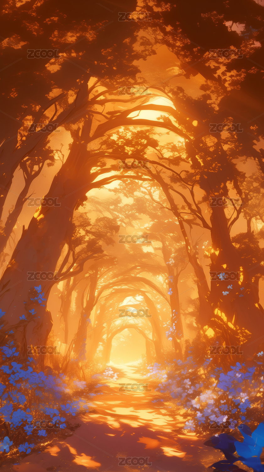 白底明亮梦幻树叶浓密的蓝色大树插画绘画