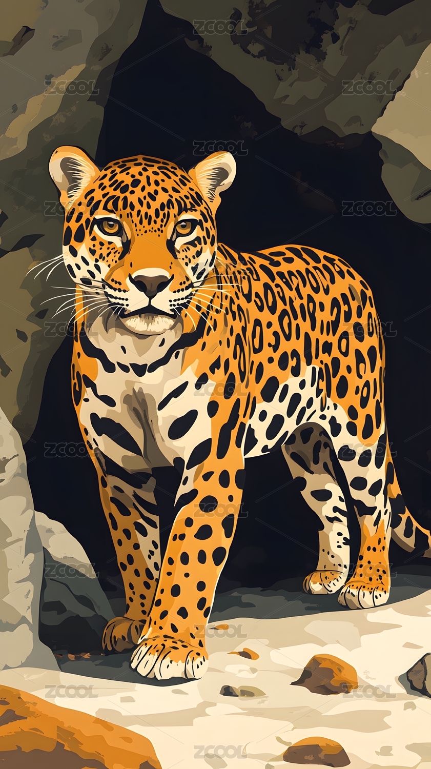 插画 黑豹 动物 艺术 壁纸 花卉 植物