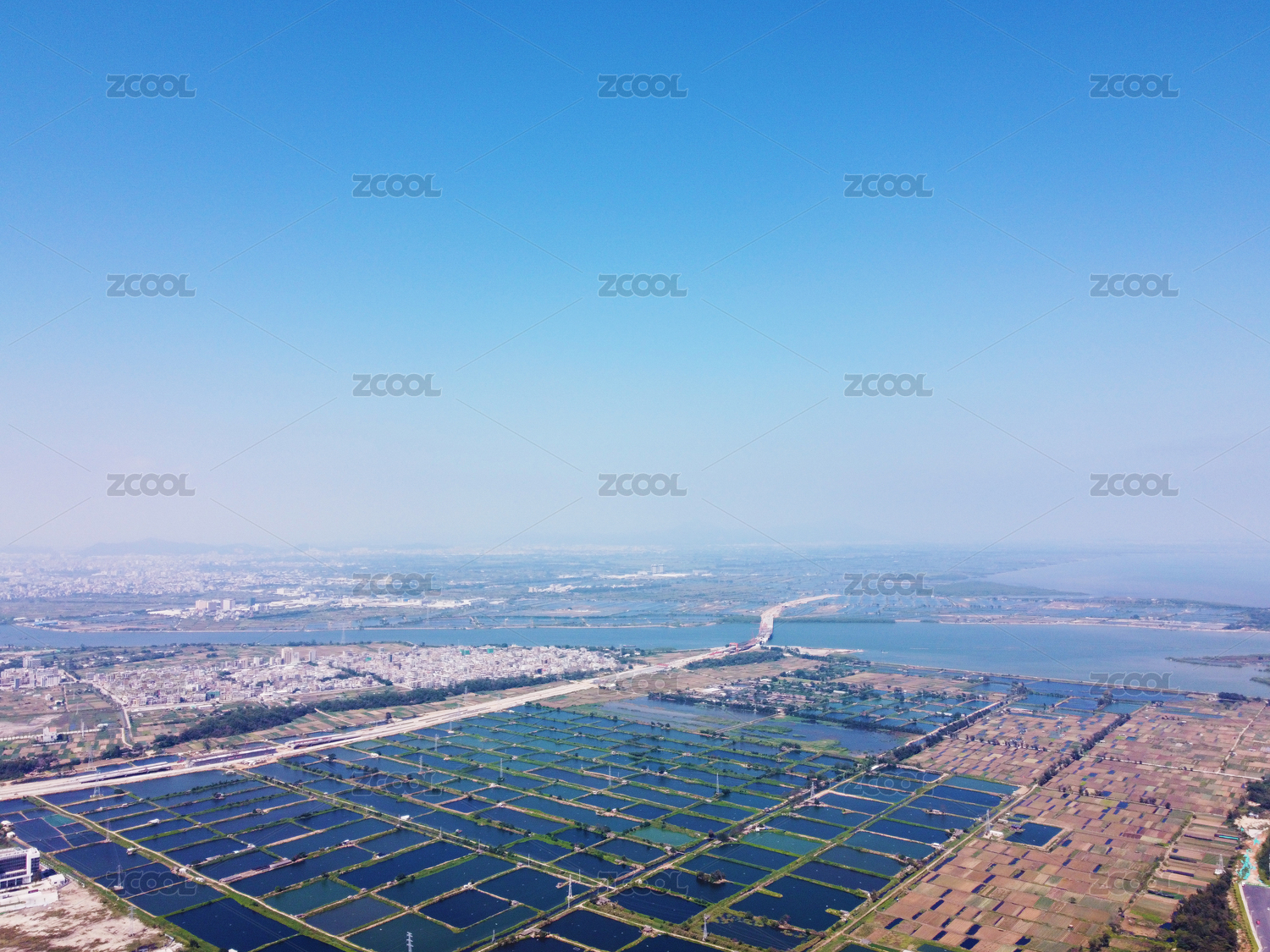 中国河北唐山市滦河入海口海水养殖场航拍图