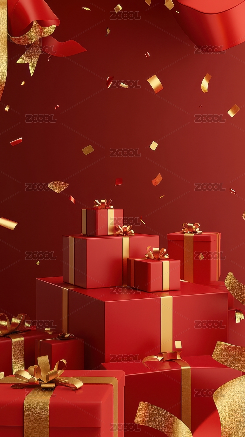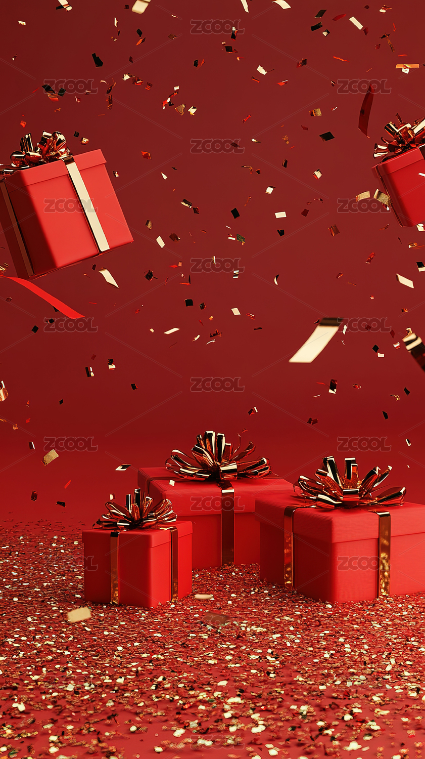 春节新年节日红色礼物礼盒背景