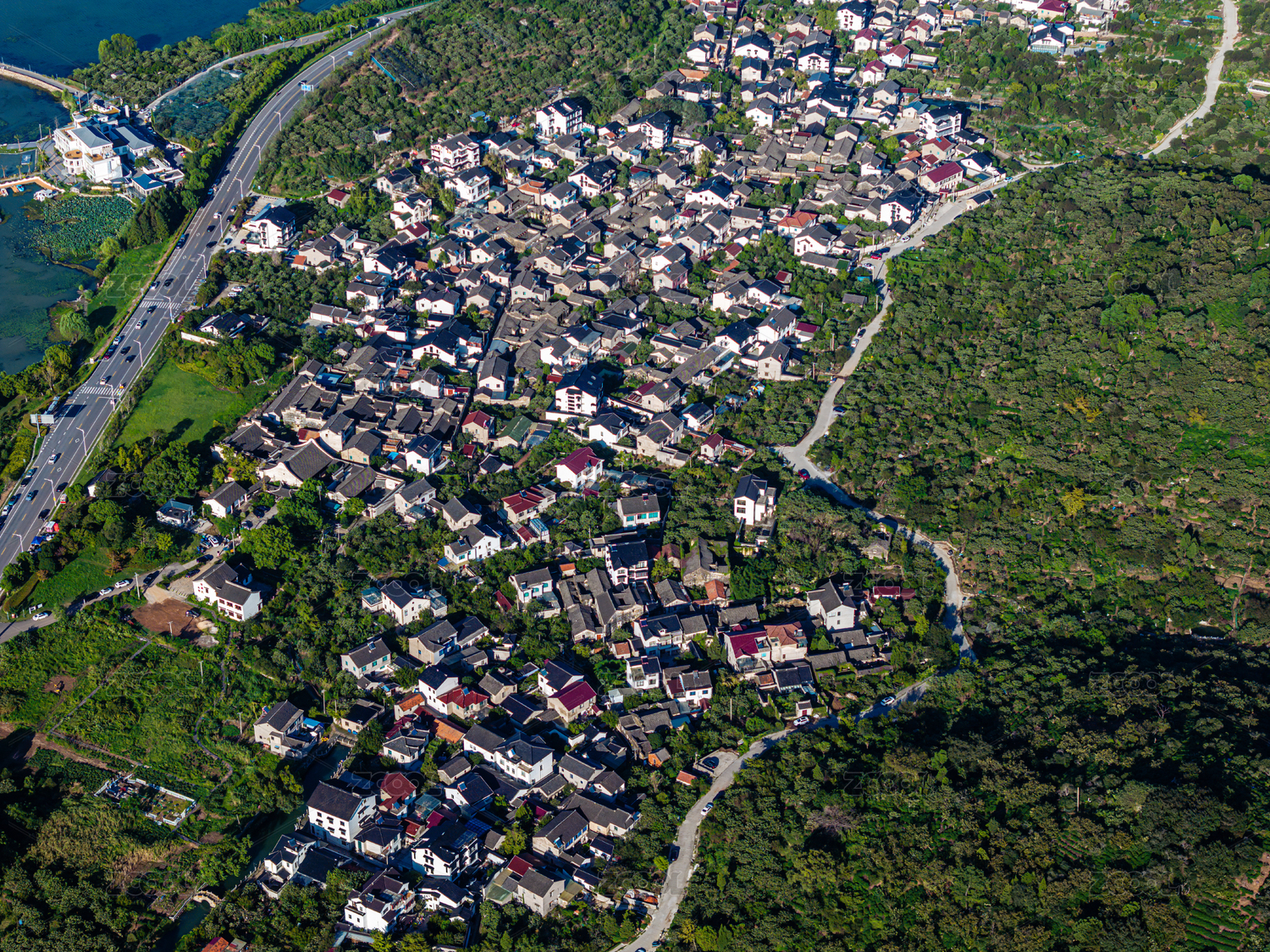 中国,西山岛,苏州,江苏,太湖,东村古村,航拍,乡村,农村,建筑