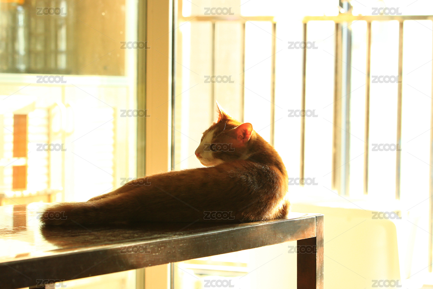 猫咪在阳台梳理自己毛发