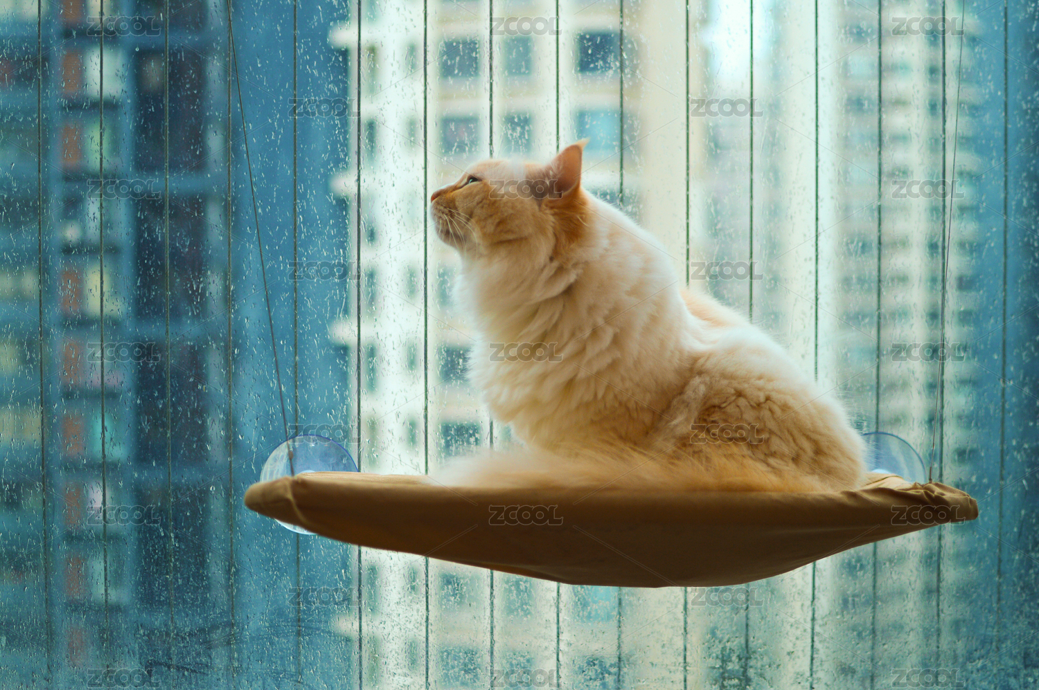 下雨天窗户边的一只阿比西尼亚猫