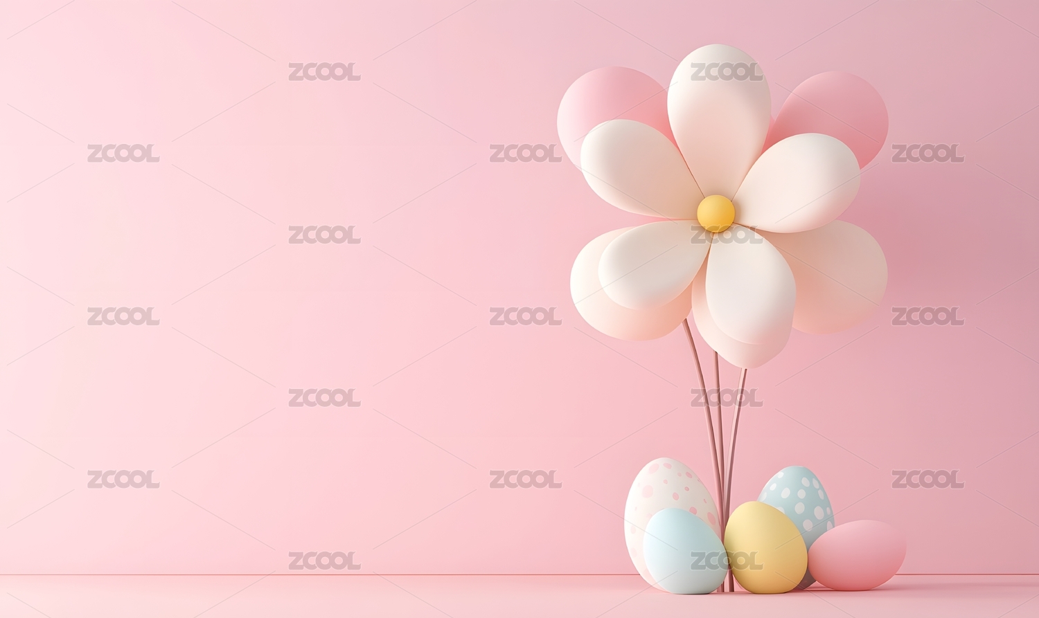 粉色花朵和彩蛋的3D渲染