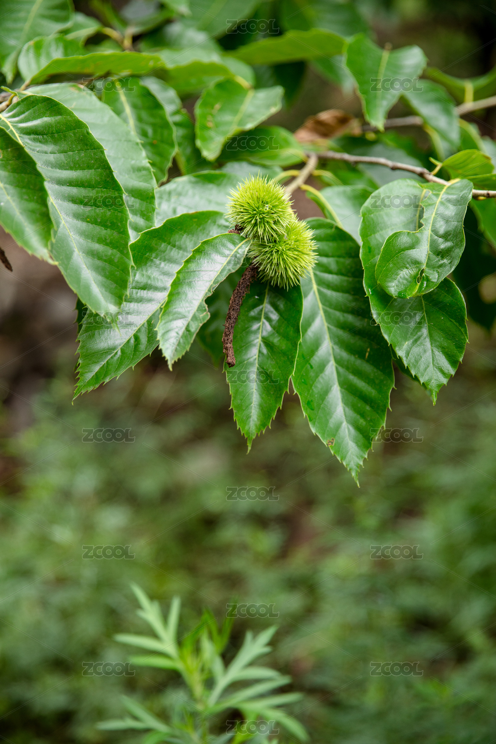 还没长大的青色板栗果实在枝头