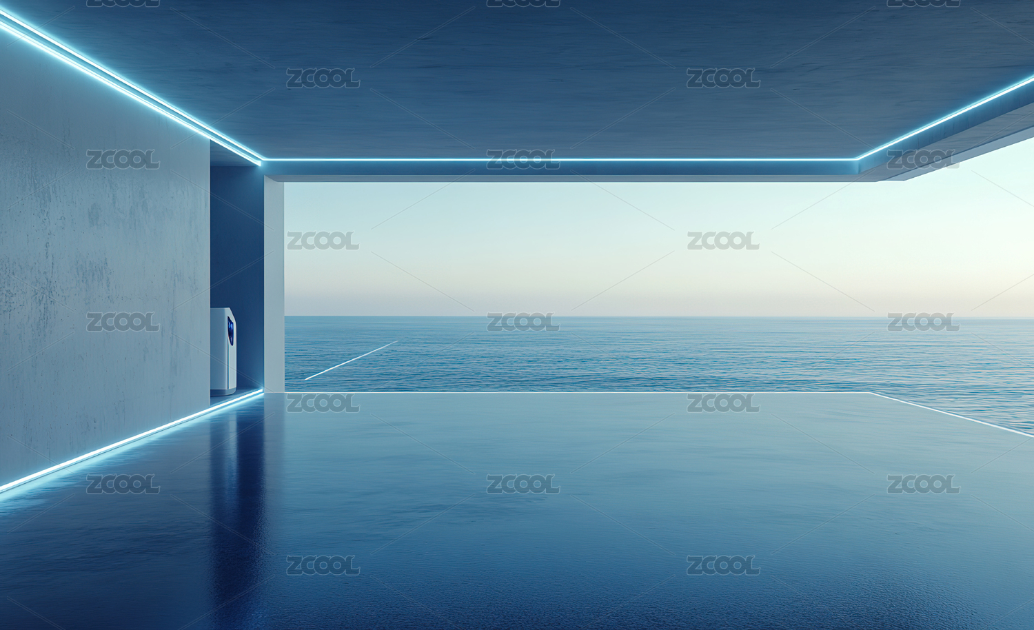夜景, 设计,蓝色, 空间, 简约, 现代, 展示台, 圆形, 海洋, 山脉