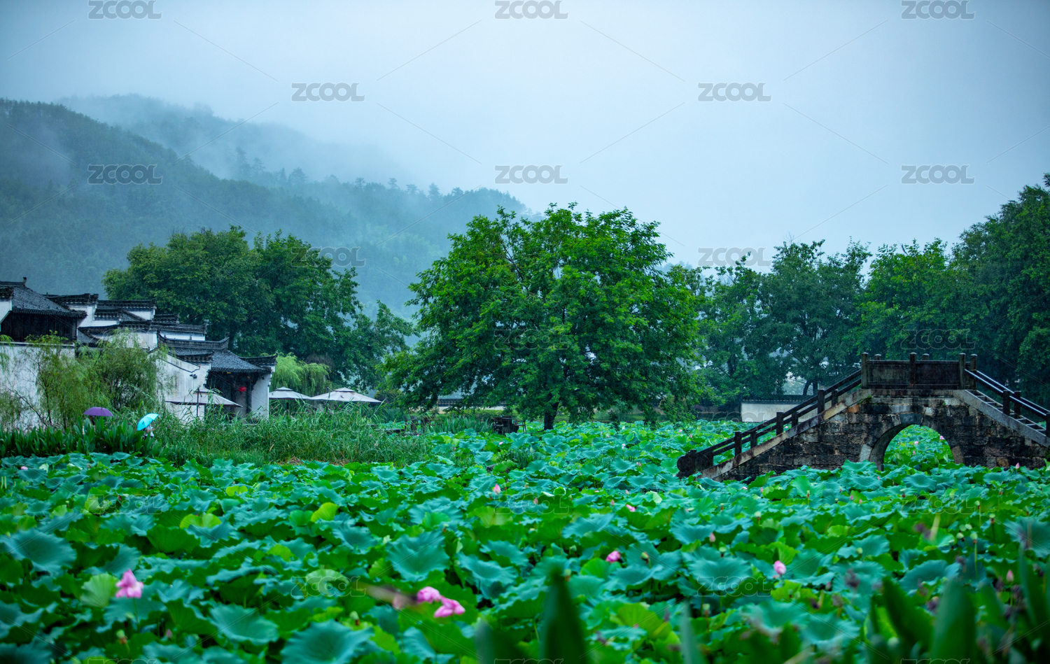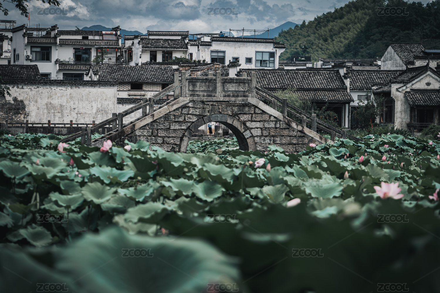 安徽省黄山市呈坎古村落夏季荷塘风光
