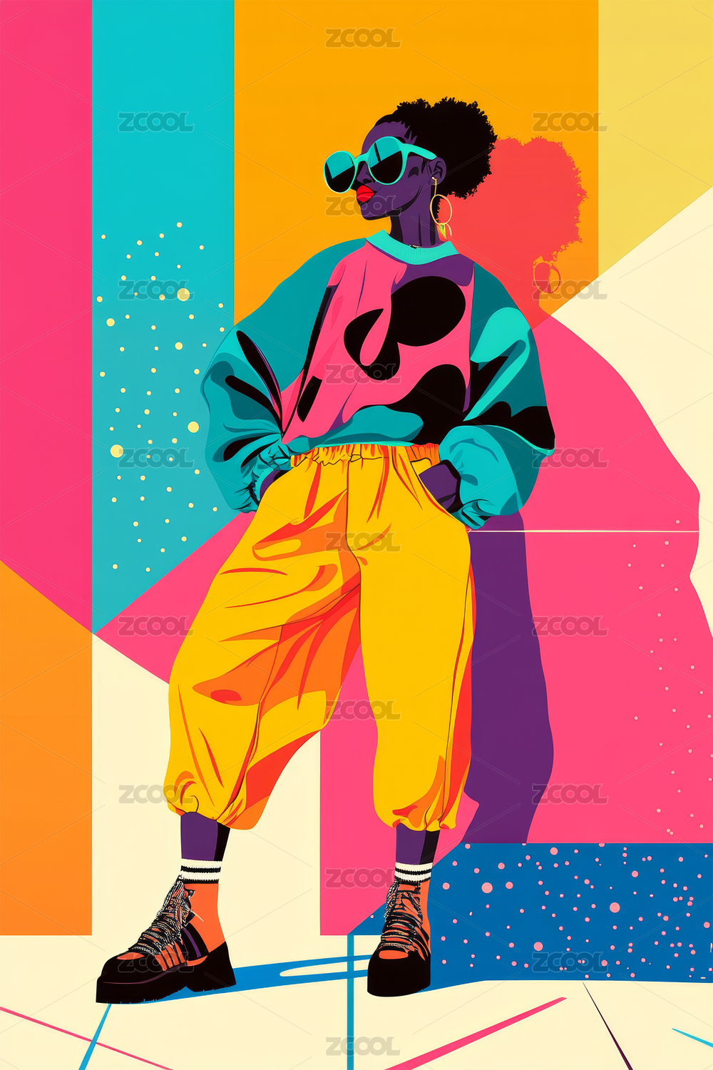 爆炸头,挎包,女人,女性,HESP2022,插画,卡通